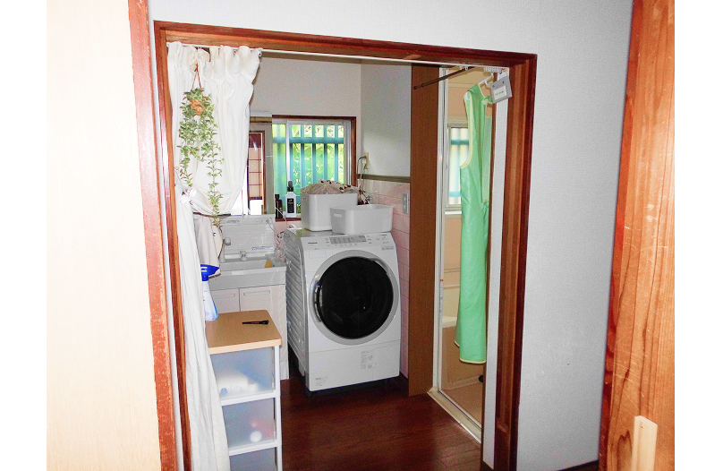 生まれつき身体障がいをお持ちのお子さまがいるご家庭では、お風呂とトイレに挟まれた脱衣所が非常に狭く、洗濯機や洗面台でスペースが埋まっていました。ご家族は、全介助が必要なお子さまをお風呂へ連れて行くたびに、抱え上げて移動させる大きな負担を感じておられました。